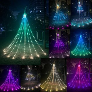 Outdoor Christmas Decorations Star Lights 12ft Christmas Tree Lights With Topper Star 240 Led 8 Modes Waterfall Star Fairy String Lights For Outside Yard Patio Indoor Party Xmas Decor Warm White Amazon Com